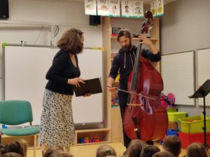 - Wysłuchały koncertu “Śmiechuś i Płakuś” i poznały instrument – kontrabas;