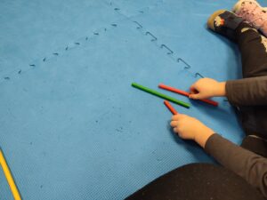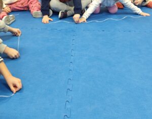 - Porównywały długości sznurków i ćwiczyły pojęcia krótszy, dłuższy;