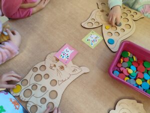- Ćwiczyły proste działania dodawania i odejmowania na podstawie opowieści matematycznej “Na podwórku”;