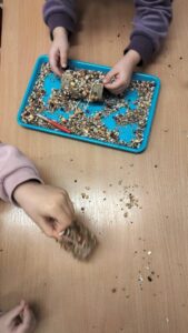 - Zabawa dydaktyczna “Jak możemy pomagać?” z wykorzystaniem ilustracji i piosenki. Zapoznanie ze sposobami pomagania zwierzętom w trakcie zimy. Przygotowanie smakołyków dla ptaków.