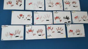 - Zabawa plastyczna z użyciem farb, pędzli, szablonów drzew, nożyczek. Ćwiczenie mięśni dłoni; rozwijanie kreatywności i sprawności manualnej.