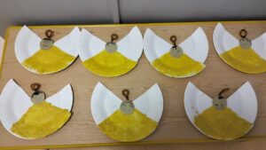 - Zabawa plastyczna z użyciem farb, pędzli, szablonów drzew, nożyczek. Ćwiczenie mięśni dłoni; rozwijanie kreatywności i sprawności manualnej.