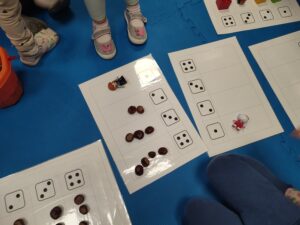 - Układały przedmioty w szeregi i porównywały ilości w oparciu o wiersz “Wiewióreczka”;