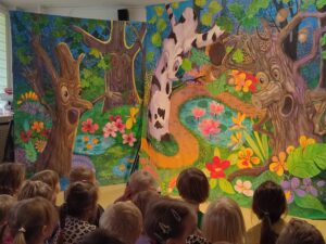 - Oglądały przedstawienie Teatru Warszawski Koliberek pt. “Leśna wyprawa Jasia i Małgosi”;